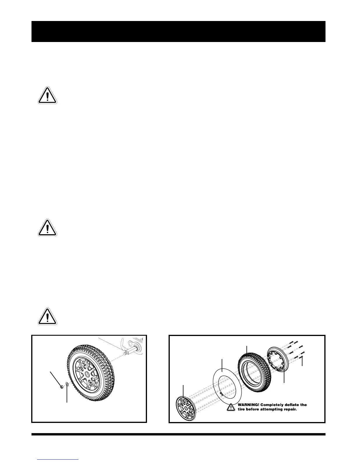 WARNING! Completely deflate pneumatic tires before attempting repair.