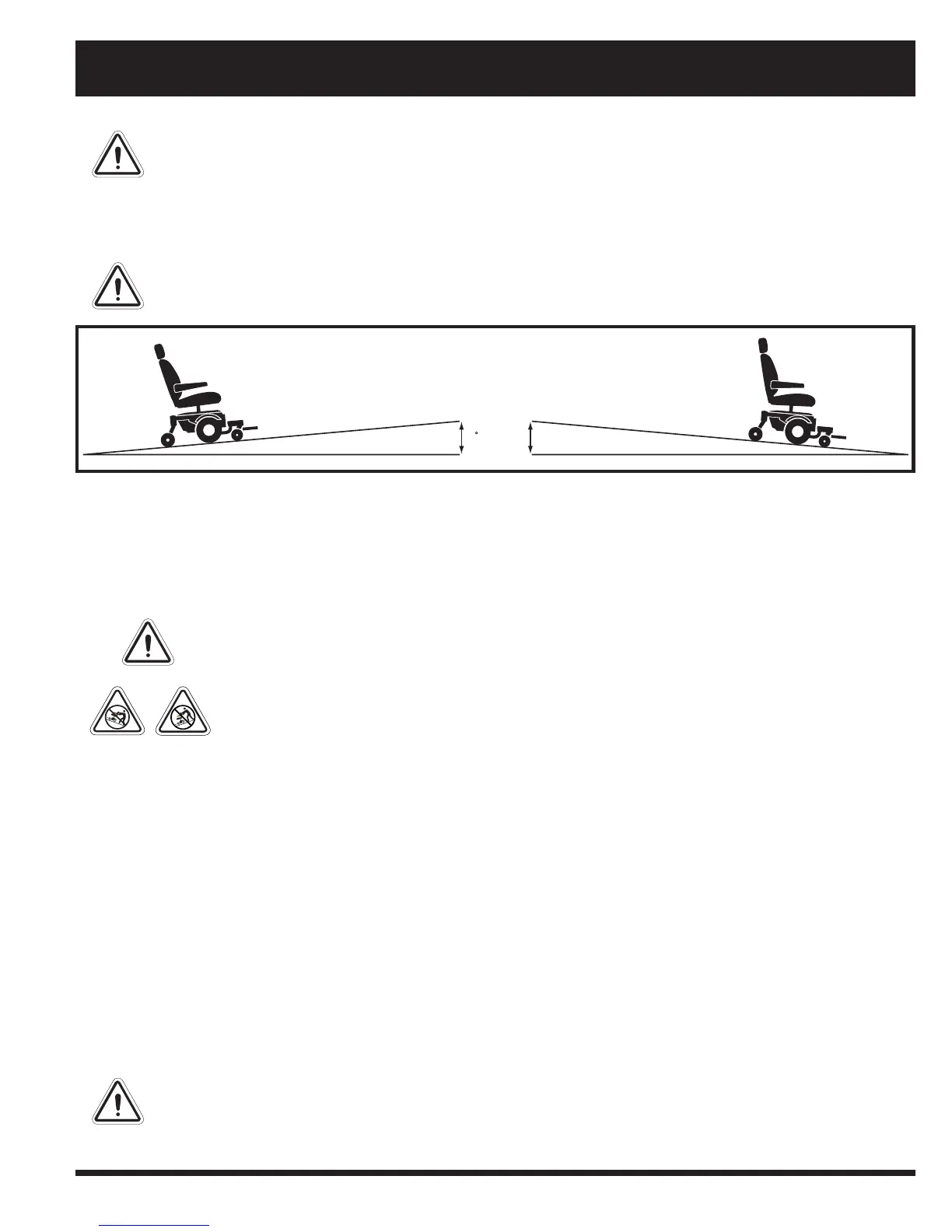 WARNING! Even though your power chair is capable of climbing slopes greater than those illustrated