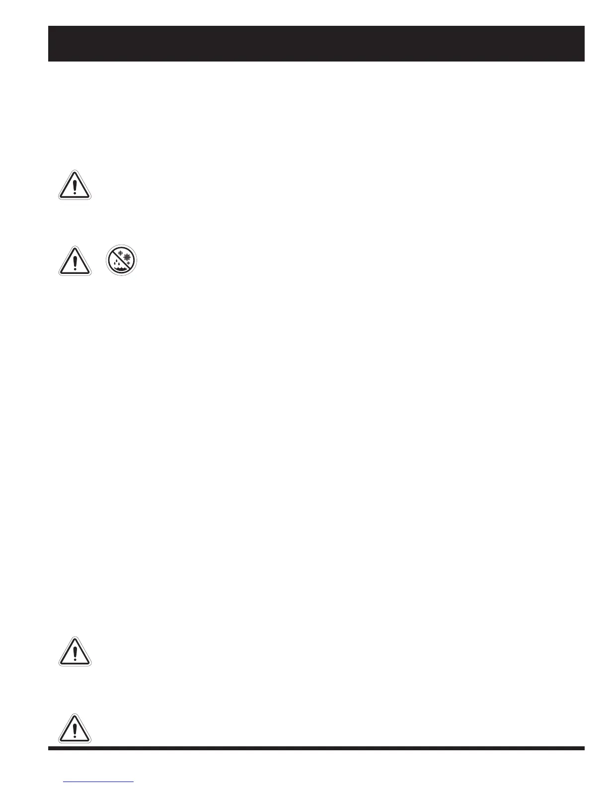 WARNING! Direct or prolonged exposure to water or dampness could cause the power