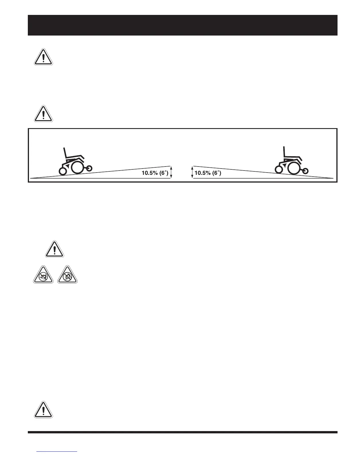 WARNING! Any attempt to climb or descend a slope steeper than 10.5% (6°) may put your power