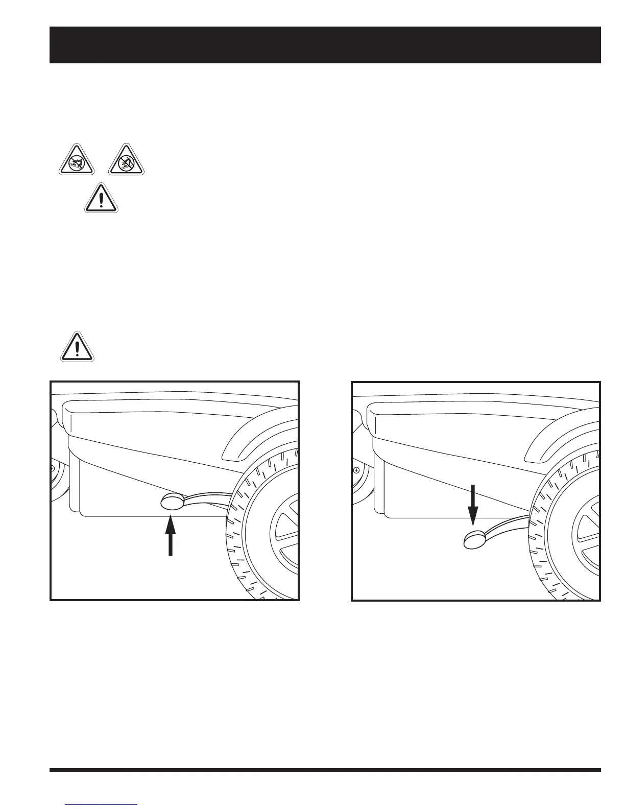 WARNING! Do not use the power chair while the drive motors are disengaged! Do not