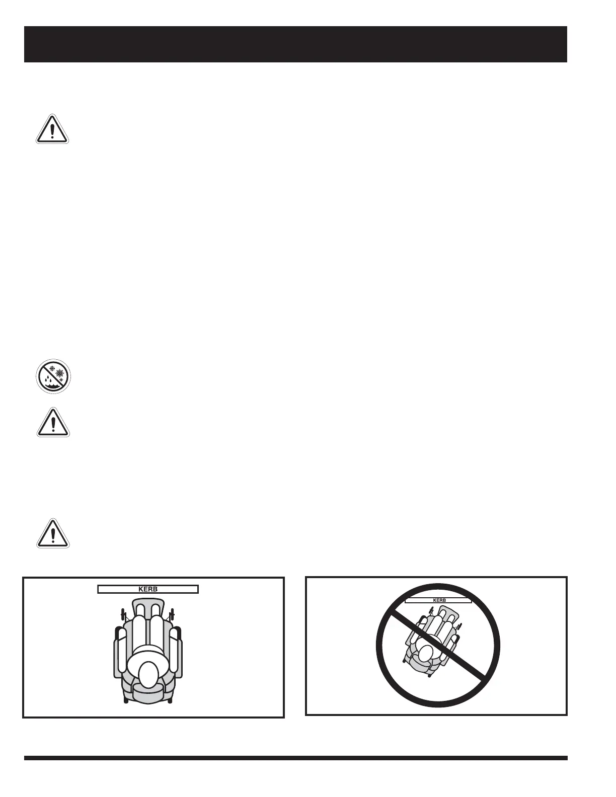 Proceed with extreme caution when driving near raised surfaces, unprotected ledges and/or drop-offs (kerbs, porches,