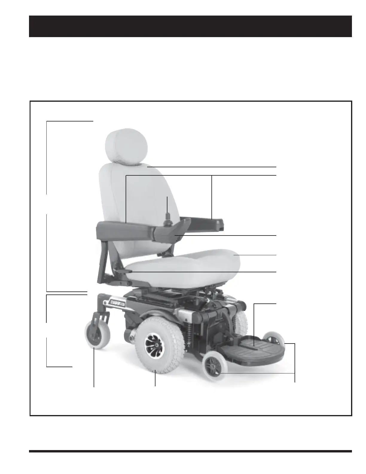 The Jazzy has two main assemblies: the seat assembly and the power base assembly. See figure 5. Typically, the seat assembly