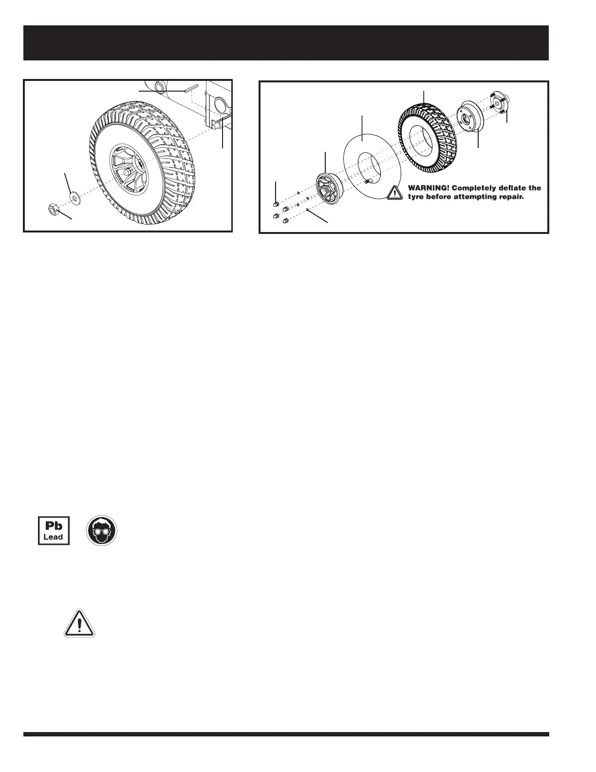 11. Inflate the pneumatic tyres to 2.4 bar (35 psi).