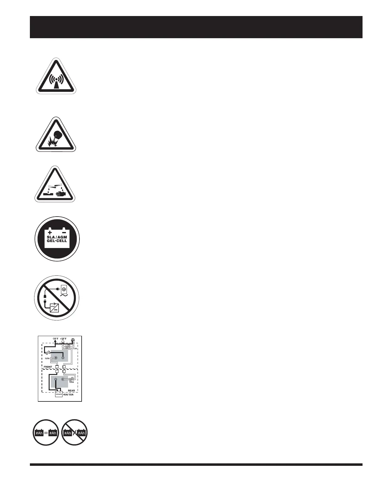 Use only AGM or Gel-Cell batteries to reduce the risk of leakage or explosive conditions.