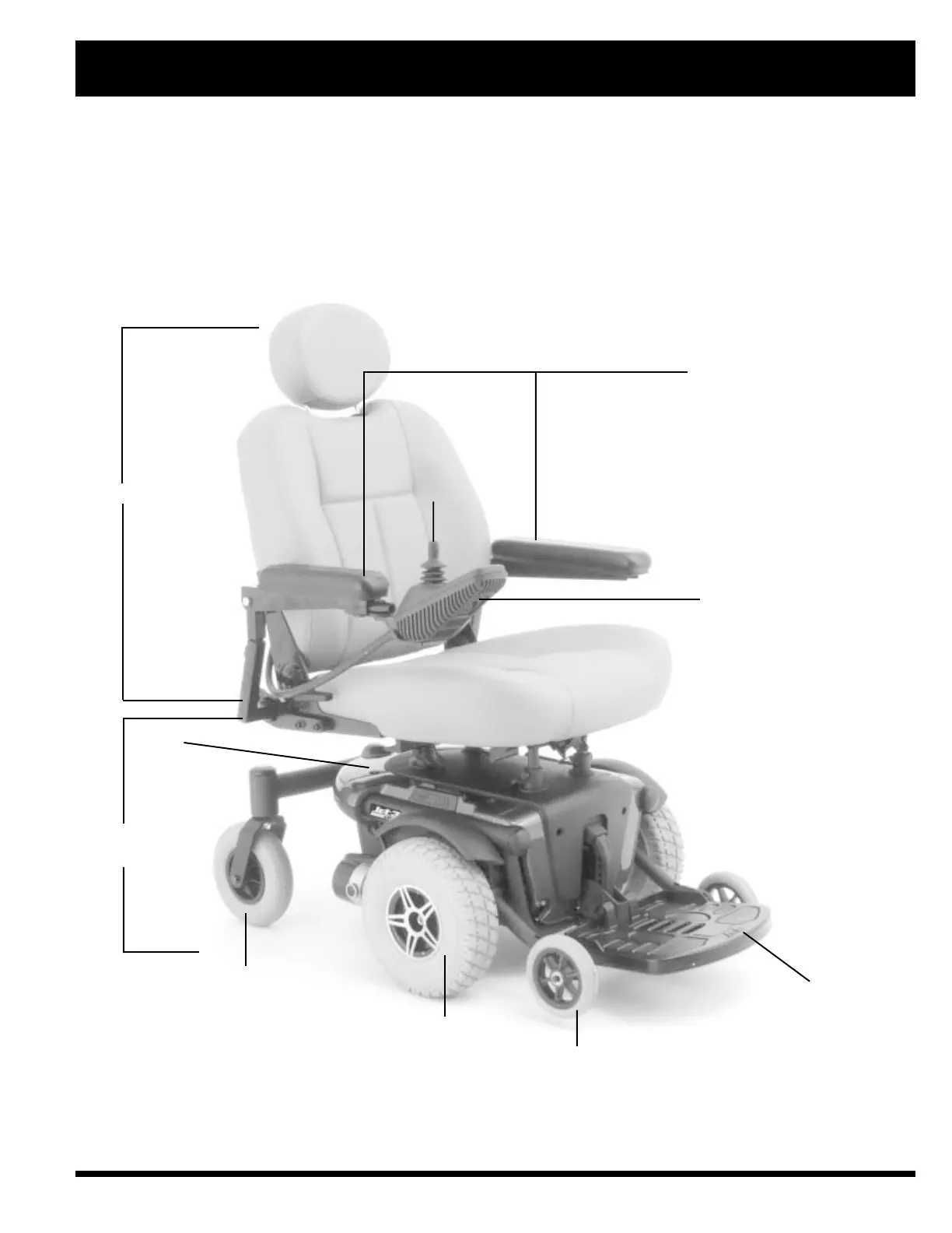 The Jet 3 Ultra has two main assemblies: the seat and the power base. See figures 4 and 5. Typically, the seat assembly