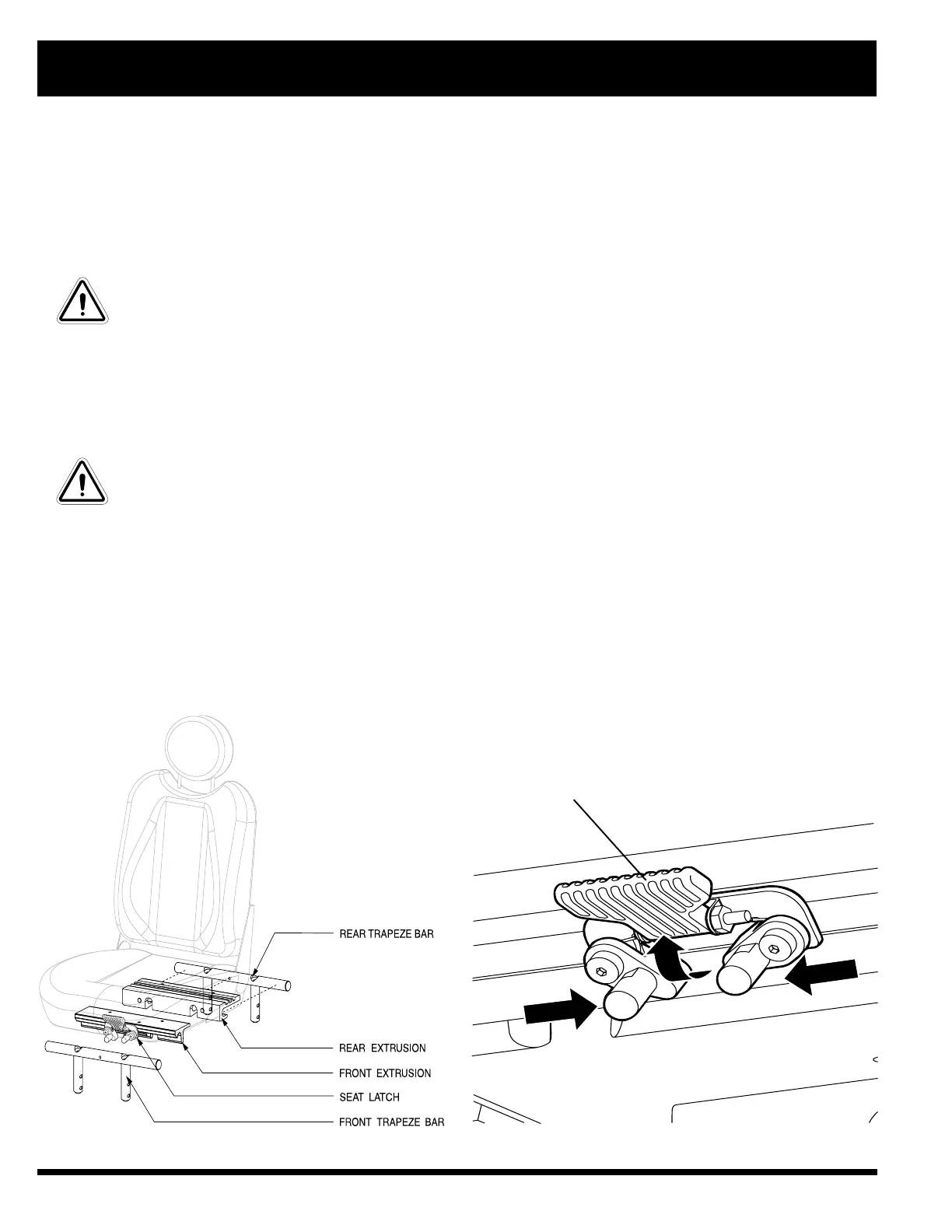 aluminum extrusions mounted to the seat base. These extrusions attach to a pair of trapeze bars that are mounted to the