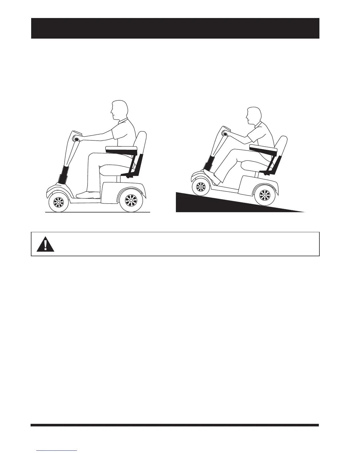 seat base to the farthest rearward position. These tests show that your Scooters ability to travel up inclines is
