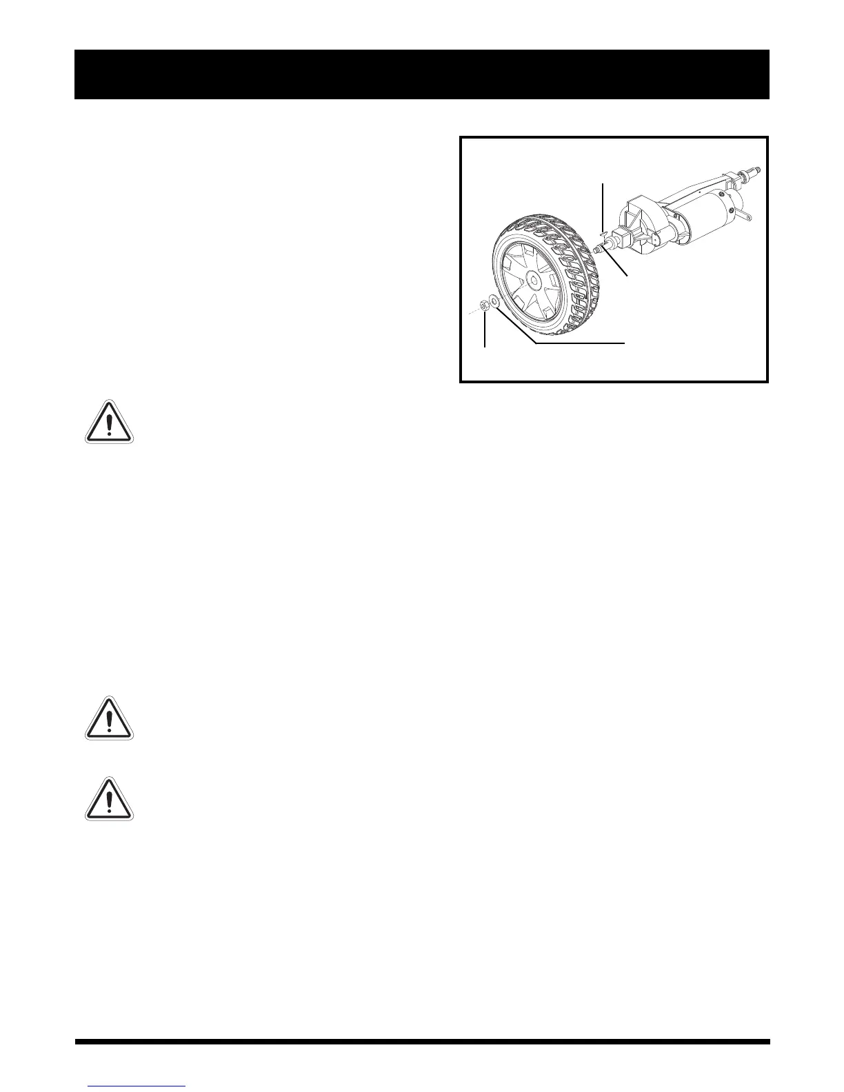 6. Reinstall the drive wheel nut and washer onto the axle and tighten.