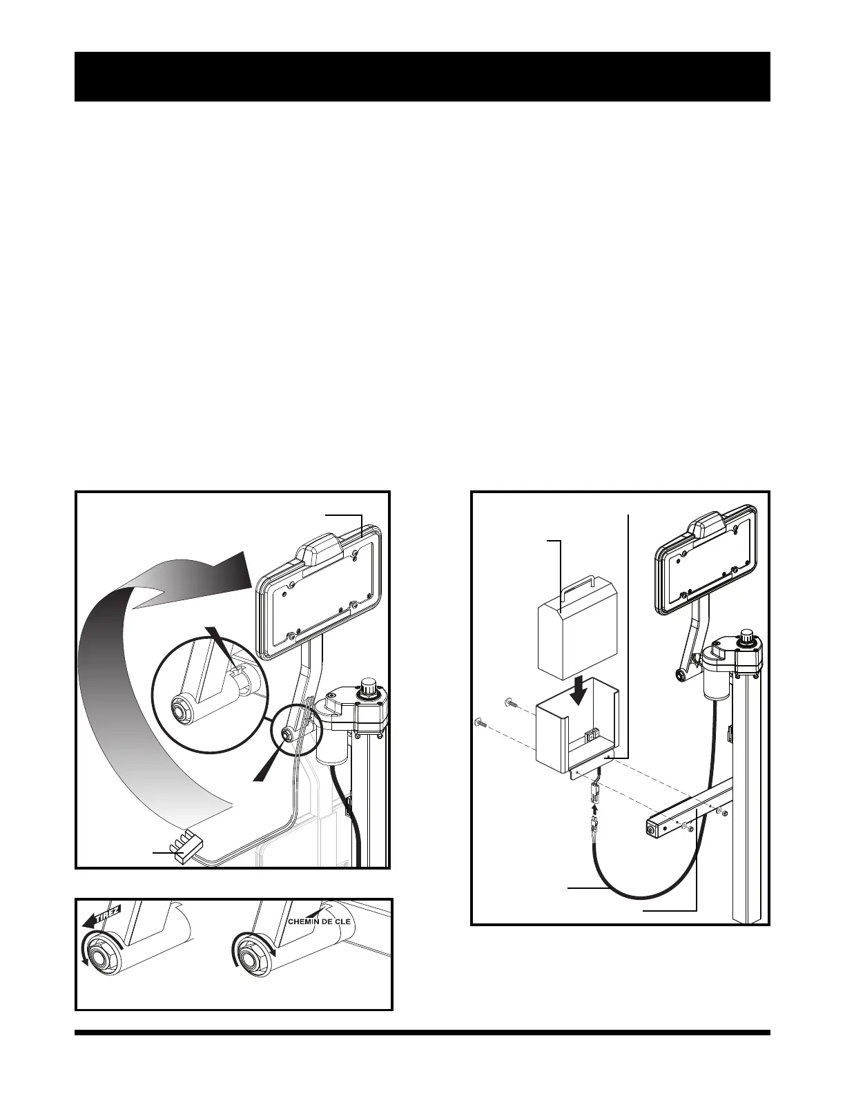 Le support de plaque d’immatriculation doit être pivoter vers le haut lors de l’installation. Voir la figure 8.