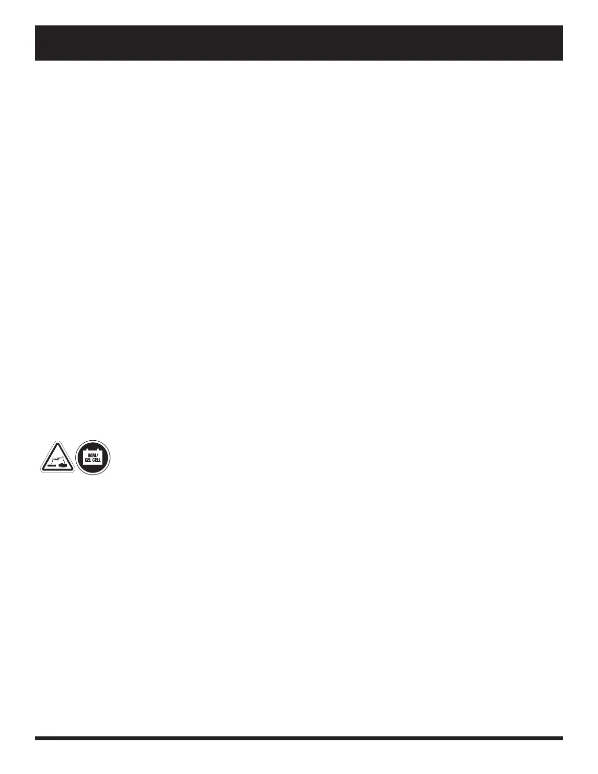 WARNING! Corrosive chemicals are contained in batteries. Use only AGM or Gel-Cell