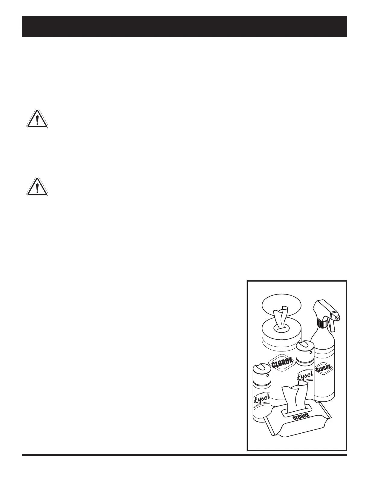 ● For plastic and metal use Lysol®/Clorox® disinfecting spray/wipes