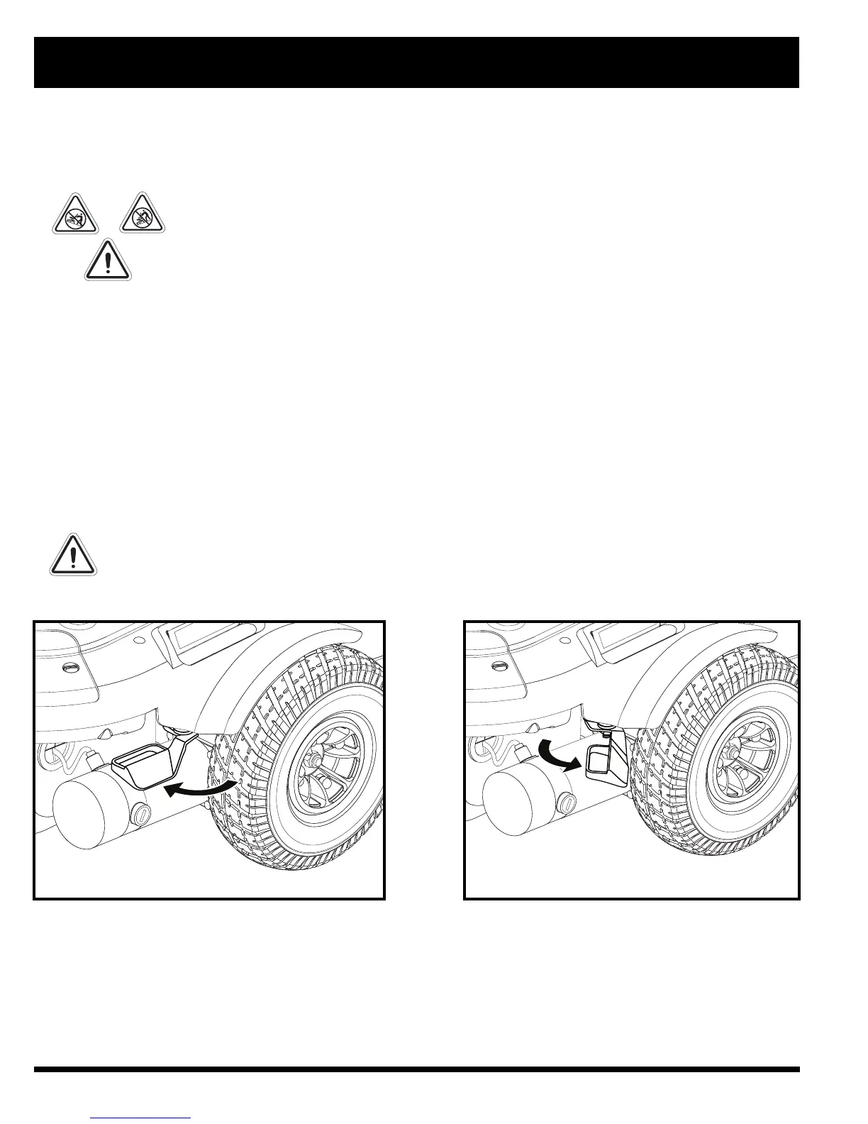 WARNING! Do not use your foot to operate the manual freewheel levers. Do not stand on the