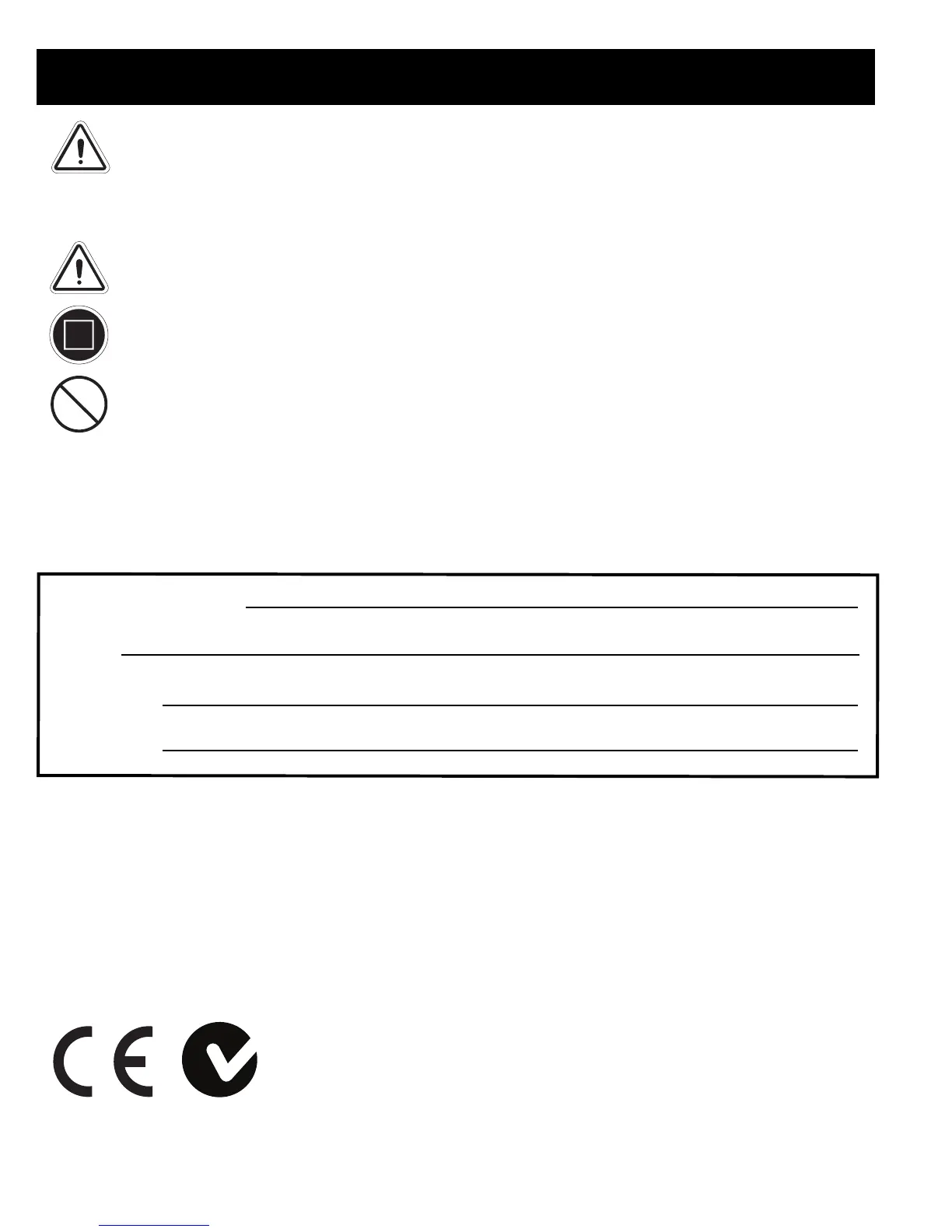 any circumstances. Performing a prohibited action can cause personal injury and/or equipment