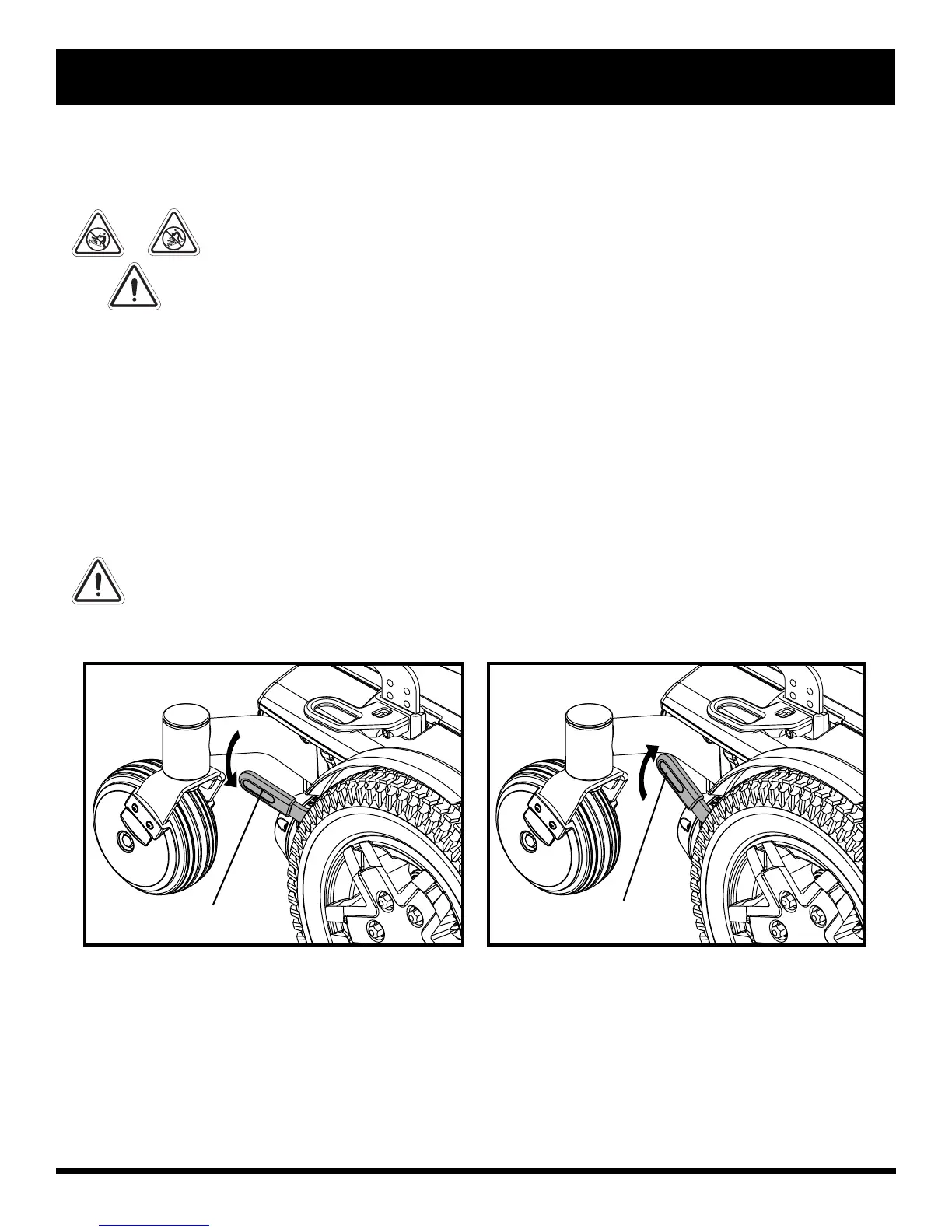 WARNING! Do not use your foot to operate the manual freewheel levers. Do not stand on the