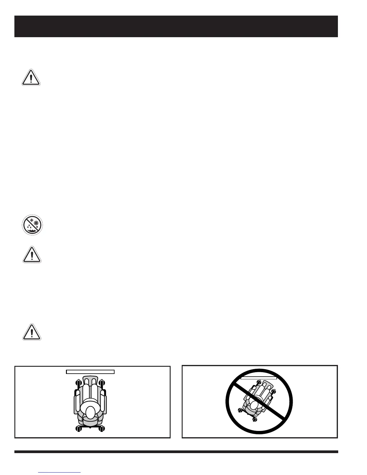 WARNING! Do not attempt to have your power chair climb or descend an obstacle that is higher