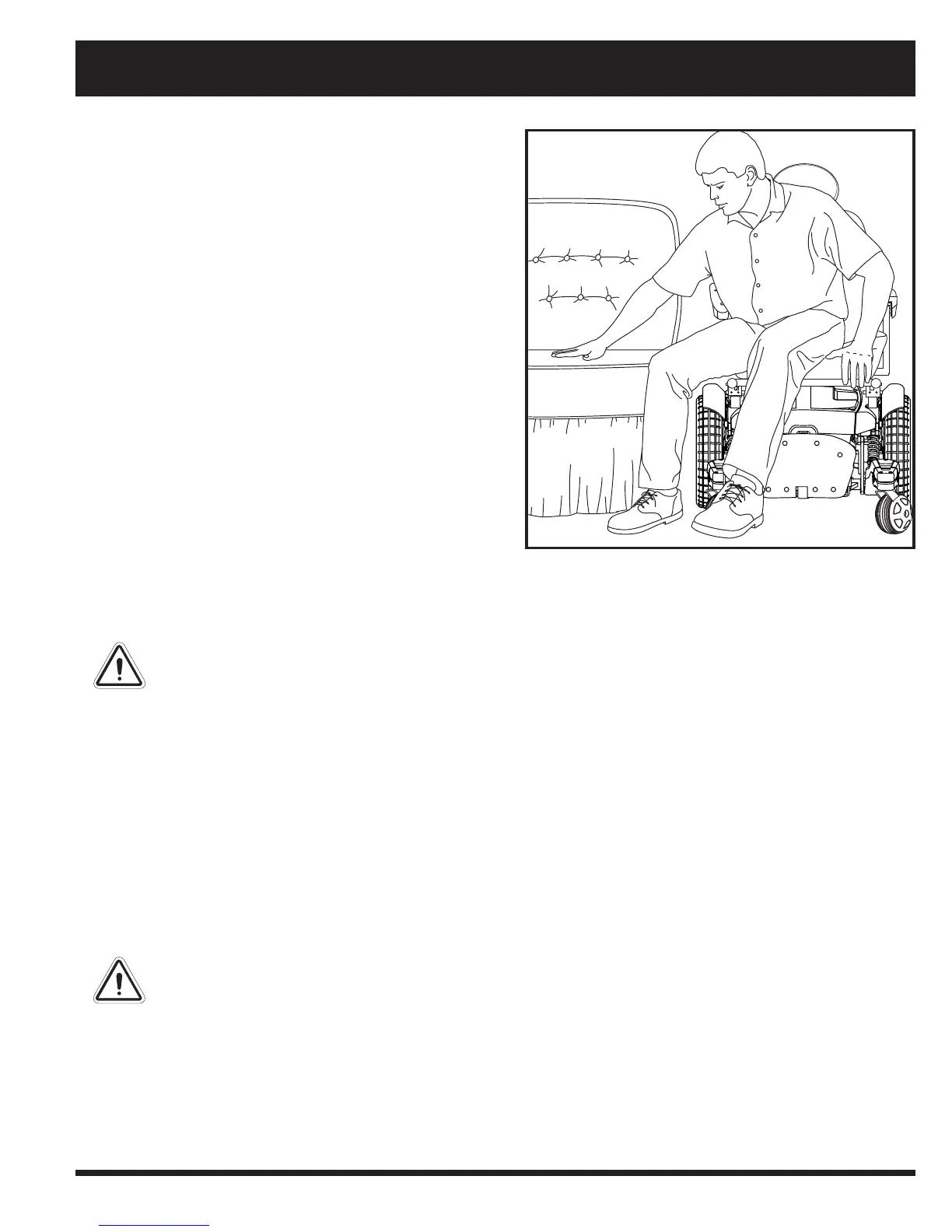 WARNING! Before transferring, position yourself as far back as possible in the power chair seat