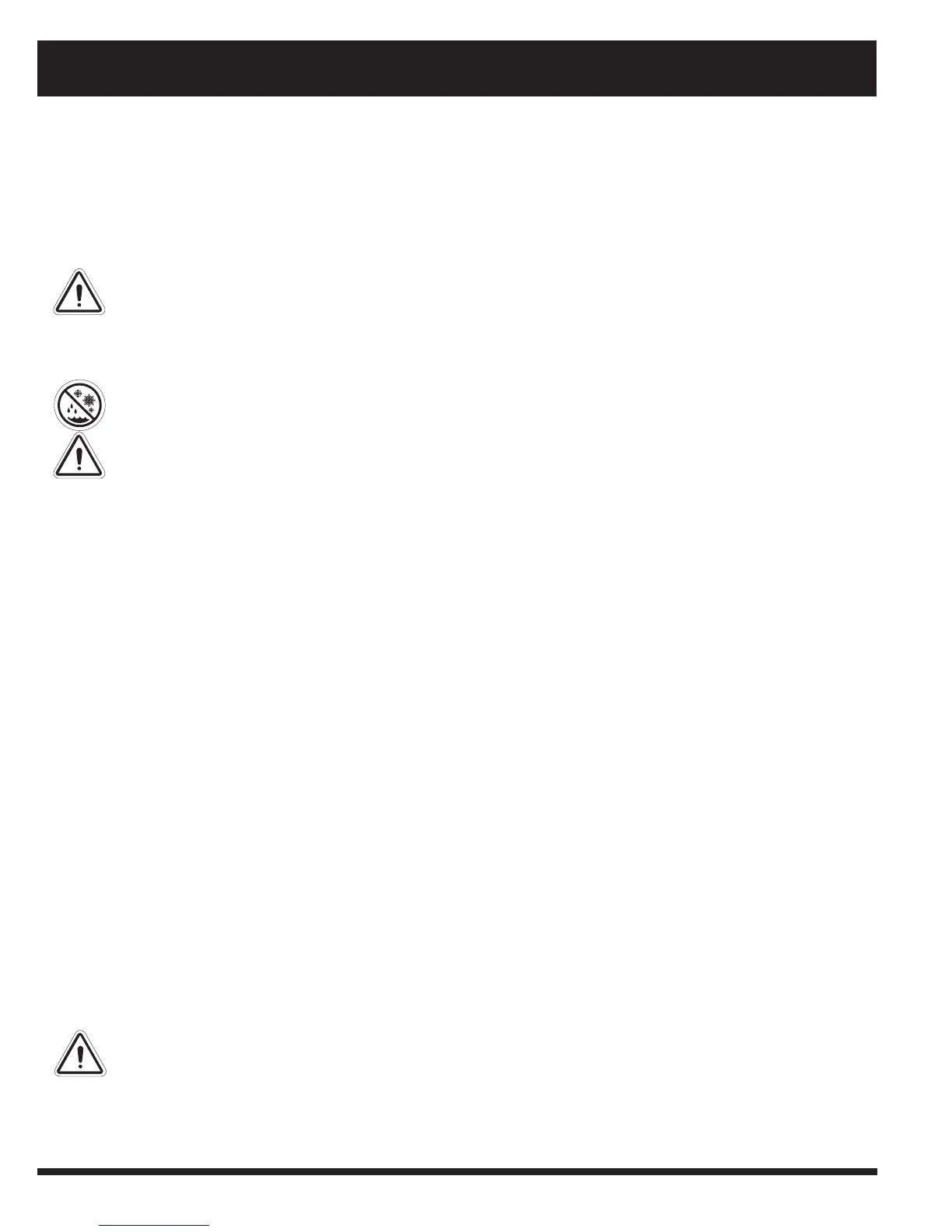WARNING! Direct or prolonged exposure to water or dampness could cause the power