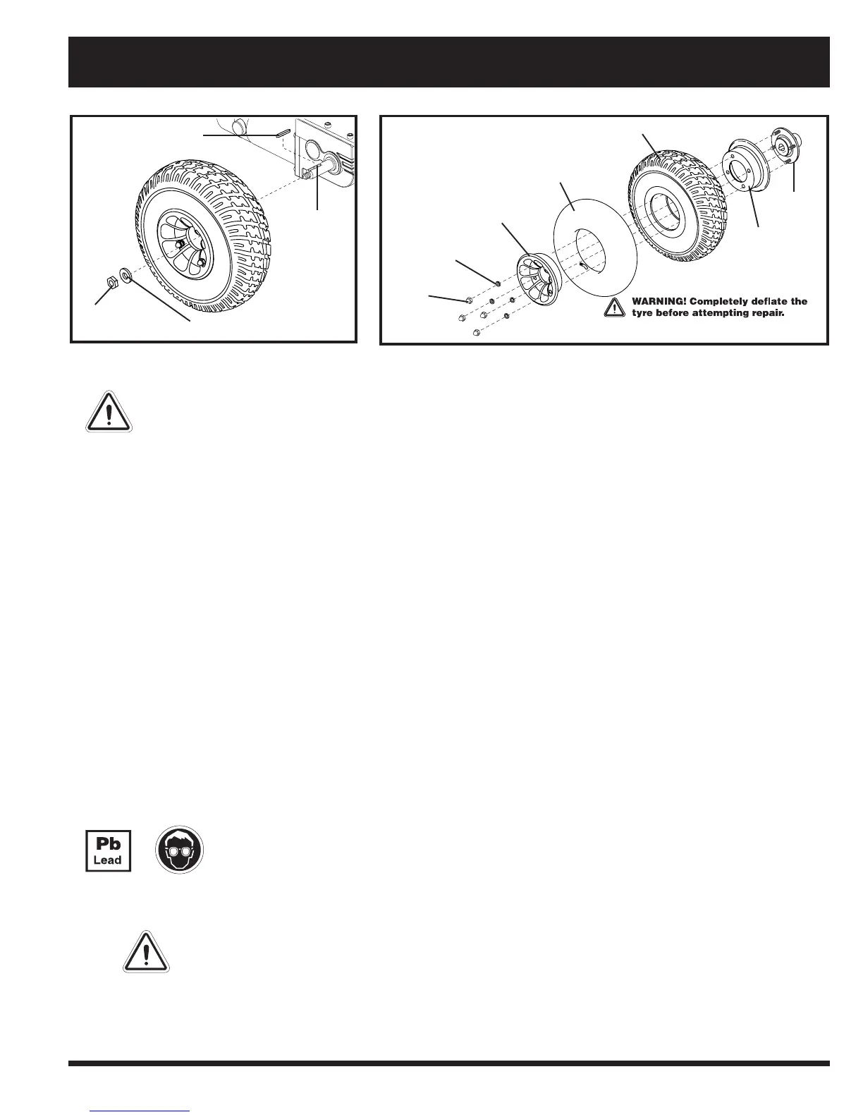 wheel. If any further disassembly is required, deflate the tyre completely or it may explode.