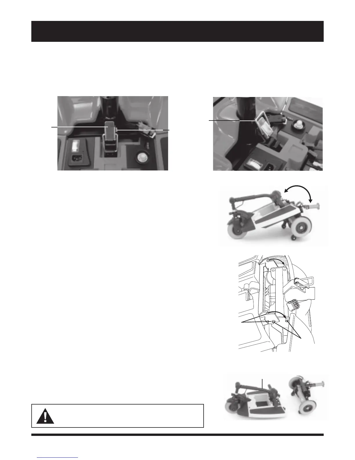 9. Unlock the front wheel by turning the tiller lock knob 90