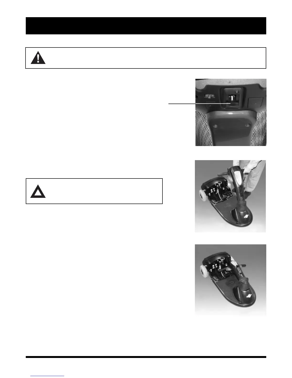 WARNING! Remove the key from the key switch before adjusting the tiller or the seat. Never