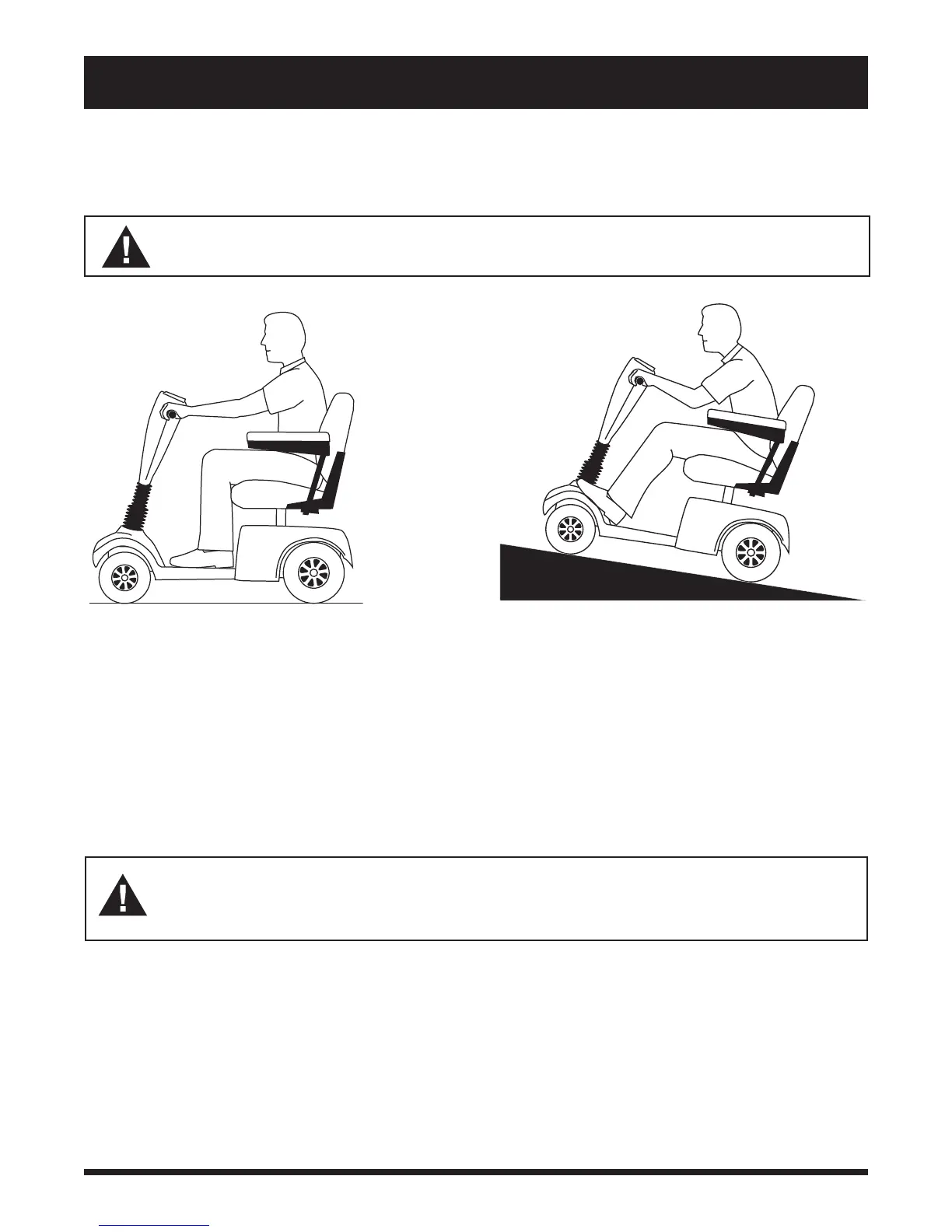 cornering speeds are not recommended. If you feel that you may tip over in a corner, reduce your speed and