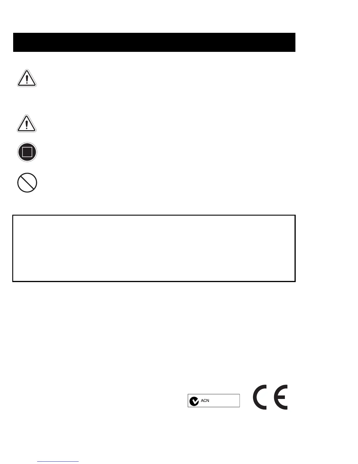 or in any circumstances. Performing a prohibited action can cause personal injury and/or