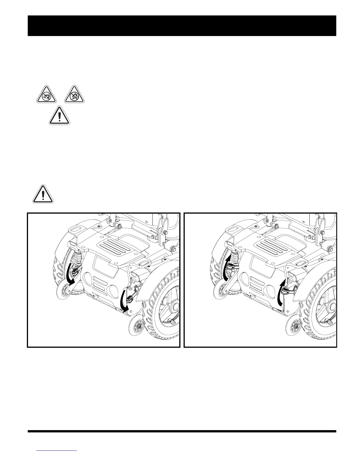 WARNING! Do not use the power chair while the drive motors are disengaged! Do not