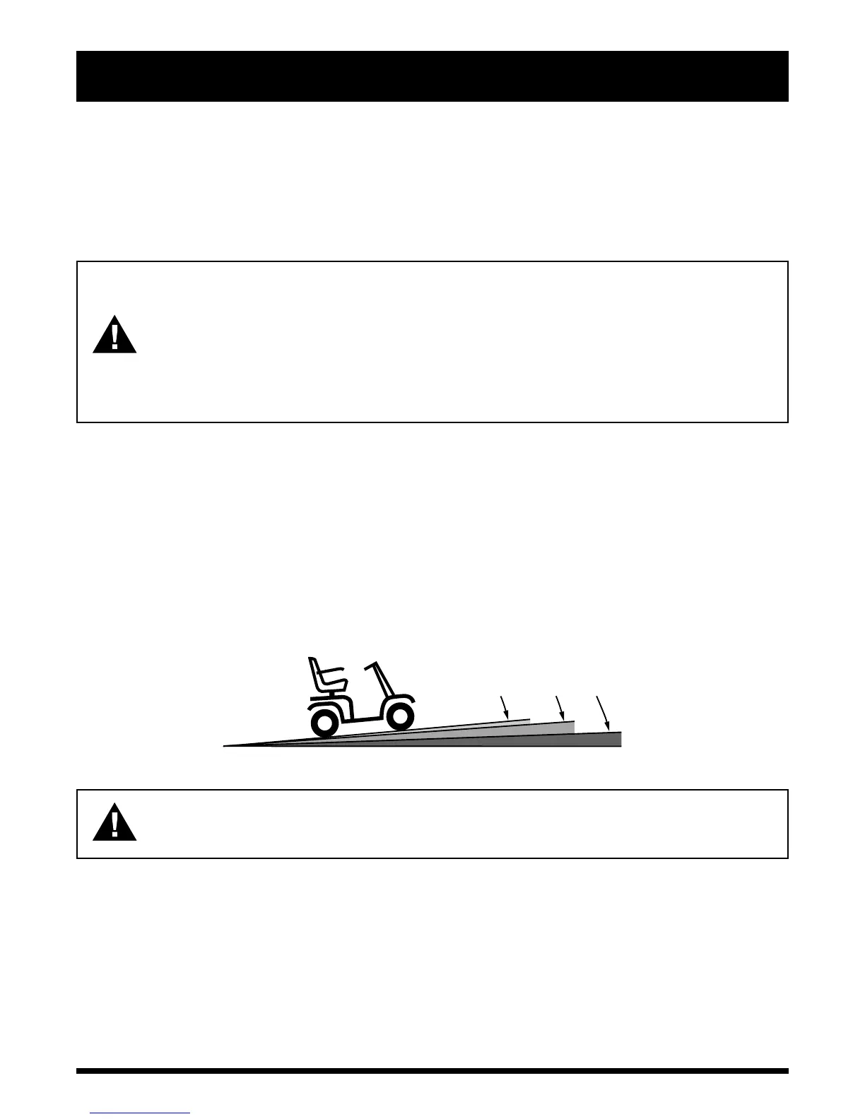 WARNING! Any attempt to climb or descend a slope steeper than 8.7% may put your scooter in an