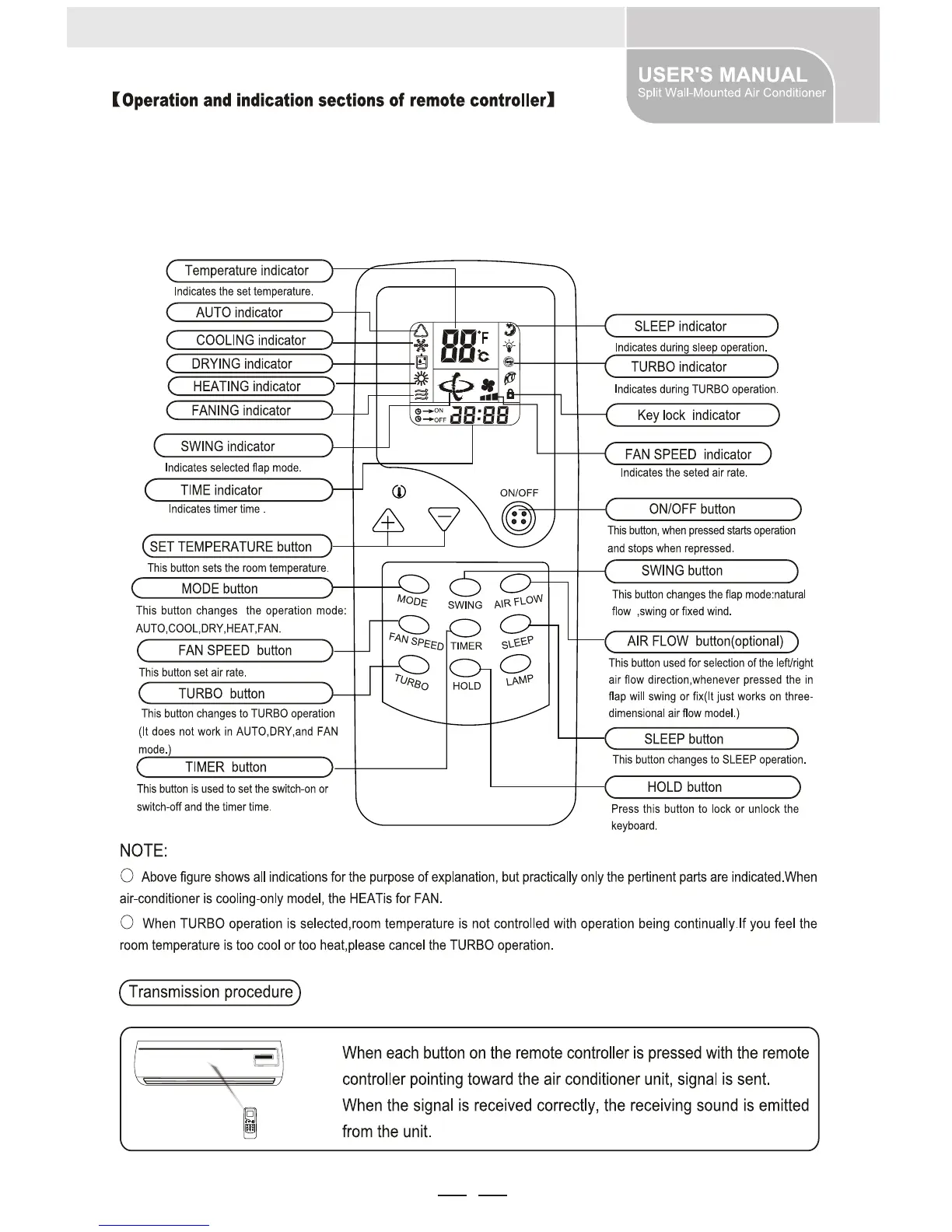Pridiom AWS180HR - Remote Controller Sections; Indications and Buttons