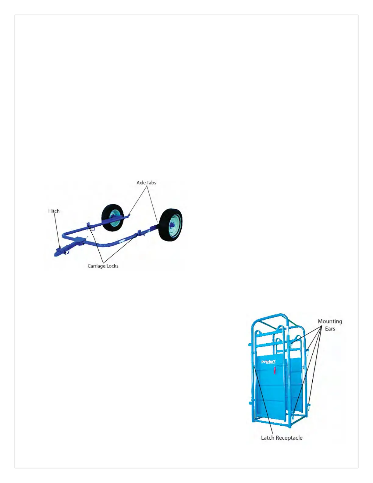 by applying pressure to the carriage hitch. Push down until the carriage locks pass the mounting slots on