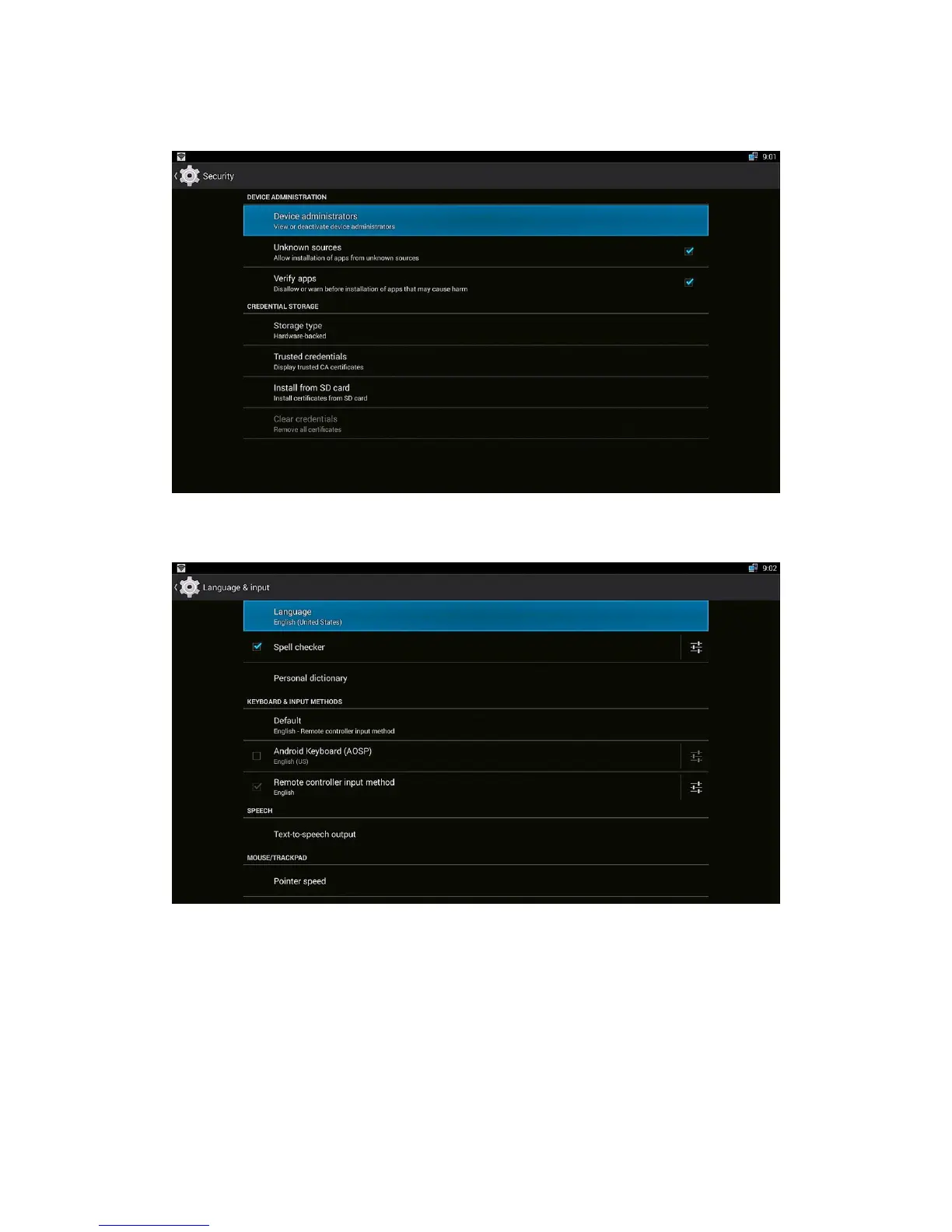 Prijector PR-N101+ - Security; Language & input