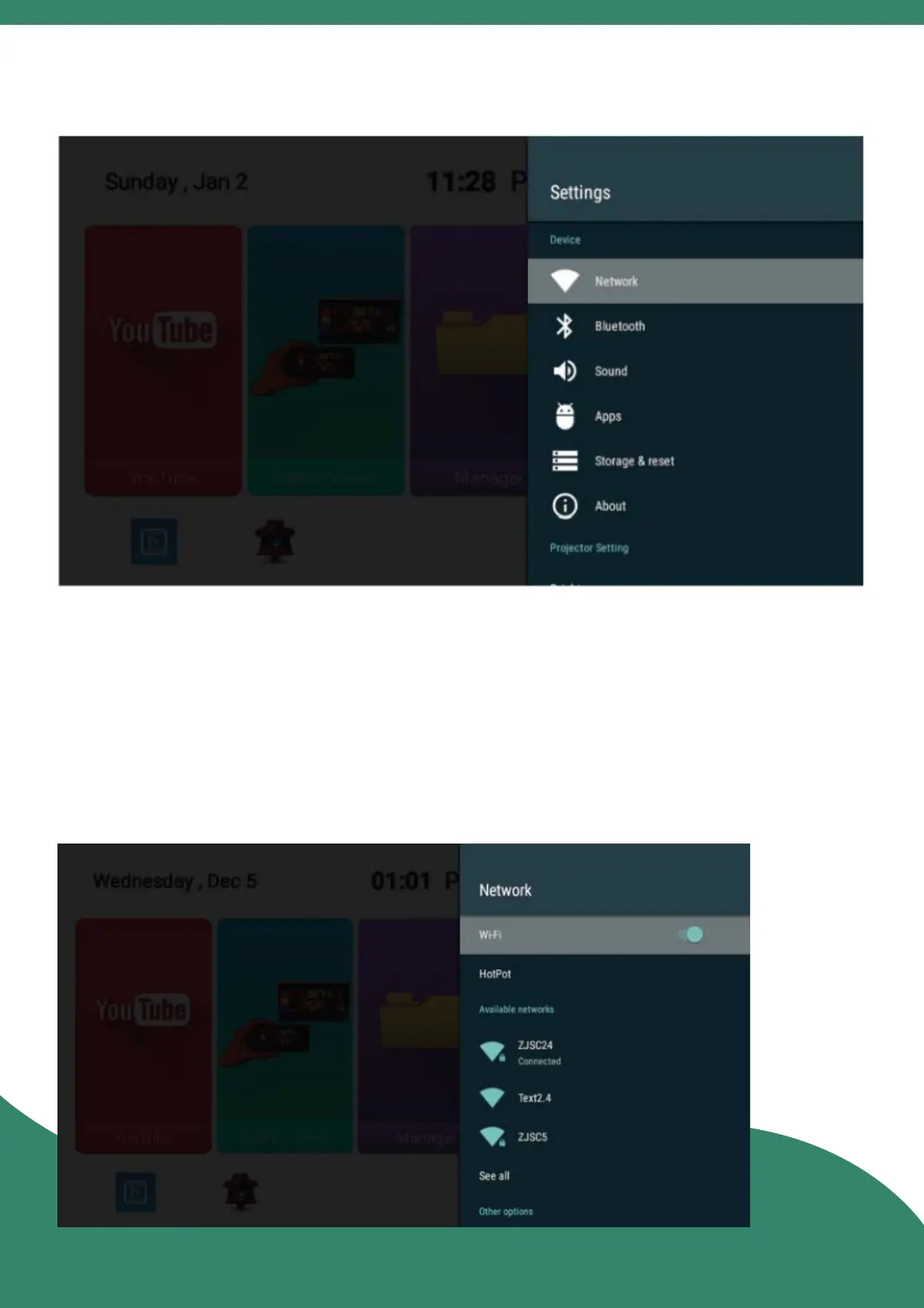 Prima Projector X2 - Settings Menu; Wi-Fi Settings