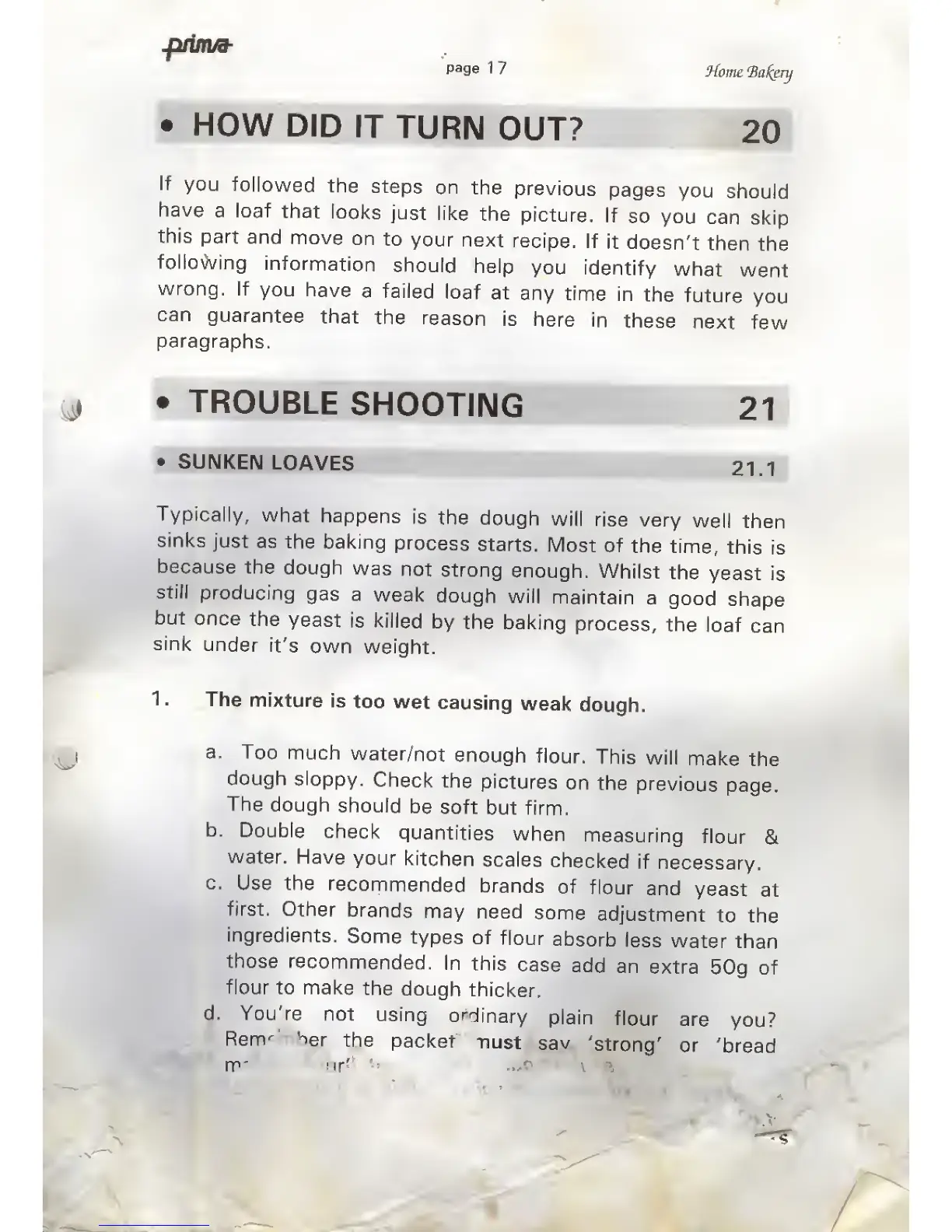 Prima ABM 4 - Troubleshooting Loaf Appearance Issues; Sunken Loaves Diagnosis