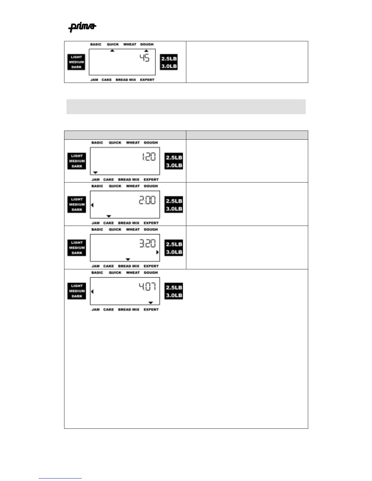 QUICK DOUGH. Dough mode that