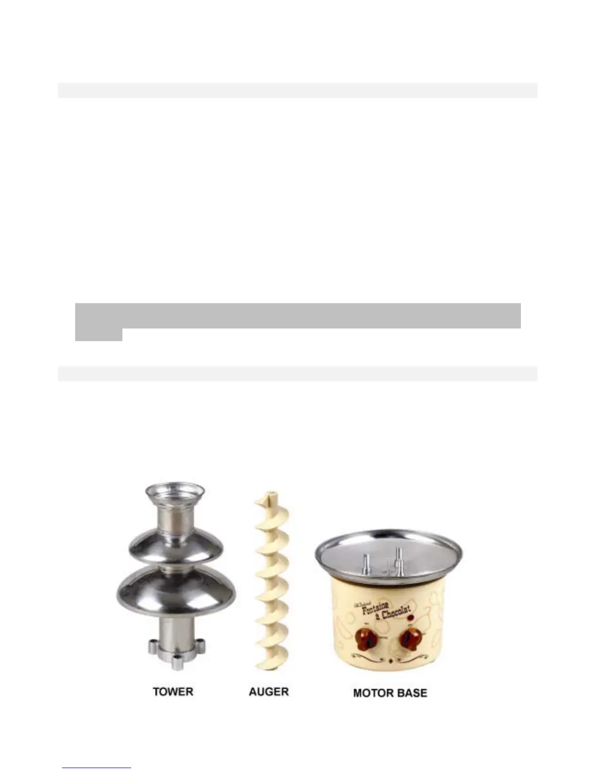 • To make cleaning of the CHOCOLATE FONDUE FOUNTAIN easier, carefully remove the