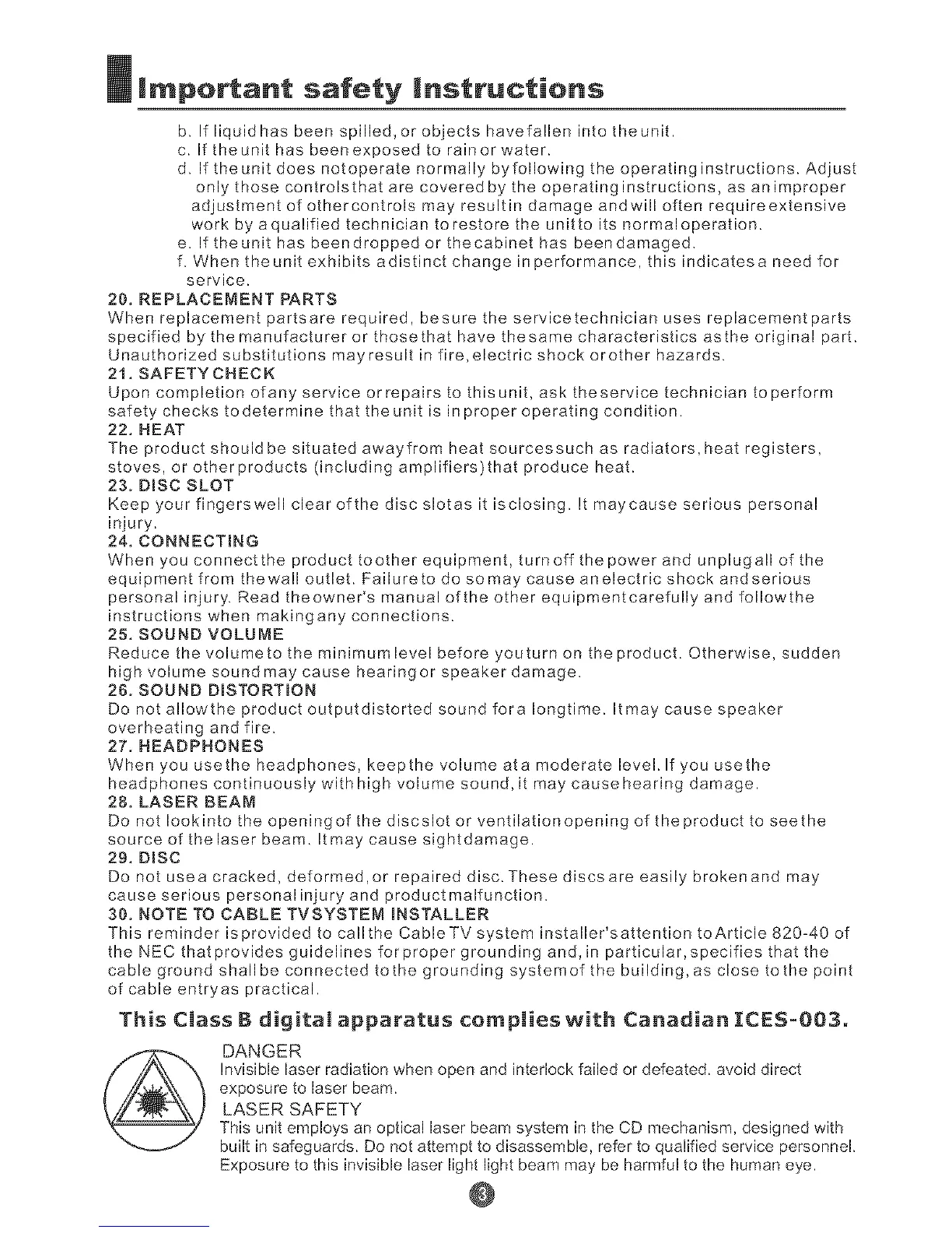 This CmassB digital apparatus complies with Canadian ICES=C03,