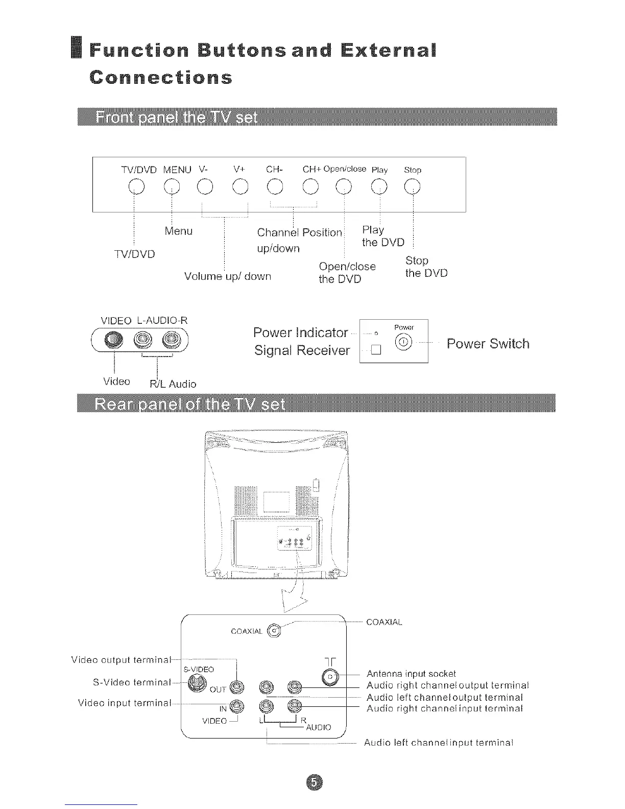 TV/DVD MENU V- V+ CH- CH+Open/close Play Stop