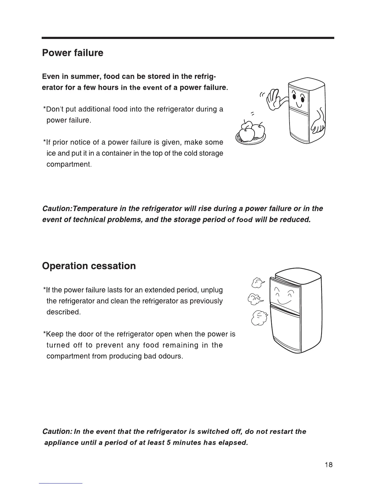 Caution: It is recommended that the refrigerator is not repeatedly turned on and