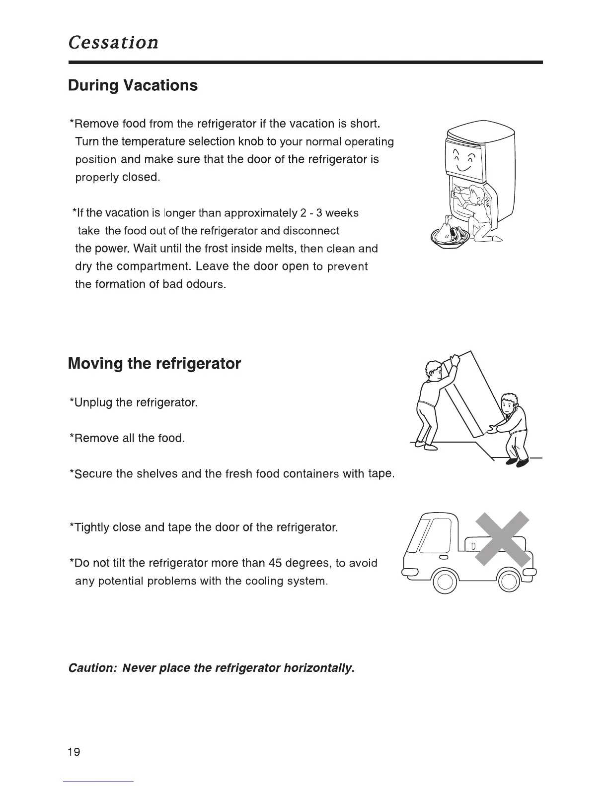 Prima LPR475 - During Vacations; Moving the Refrigerator