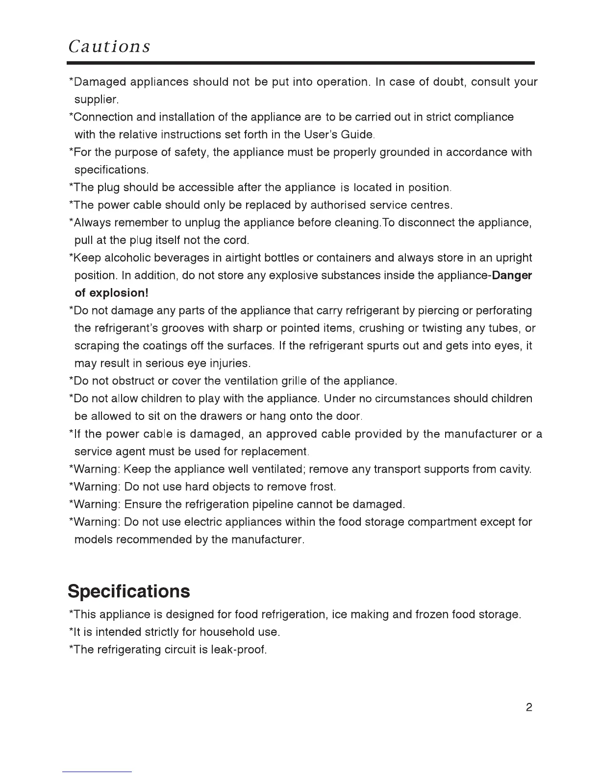 Prima LPR475 - Specifications; Appliance specifications