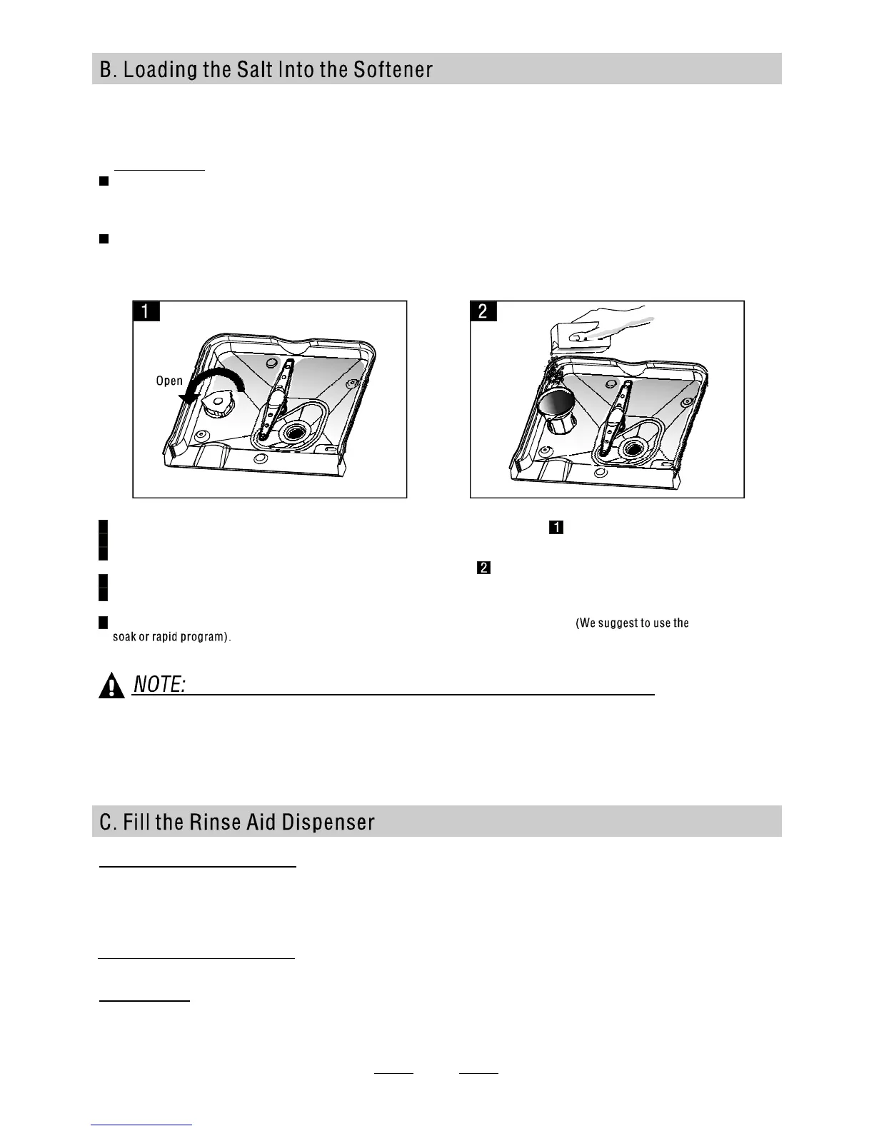 1. The salt container must only be refilled when the salt warning light in the control panel comes on.