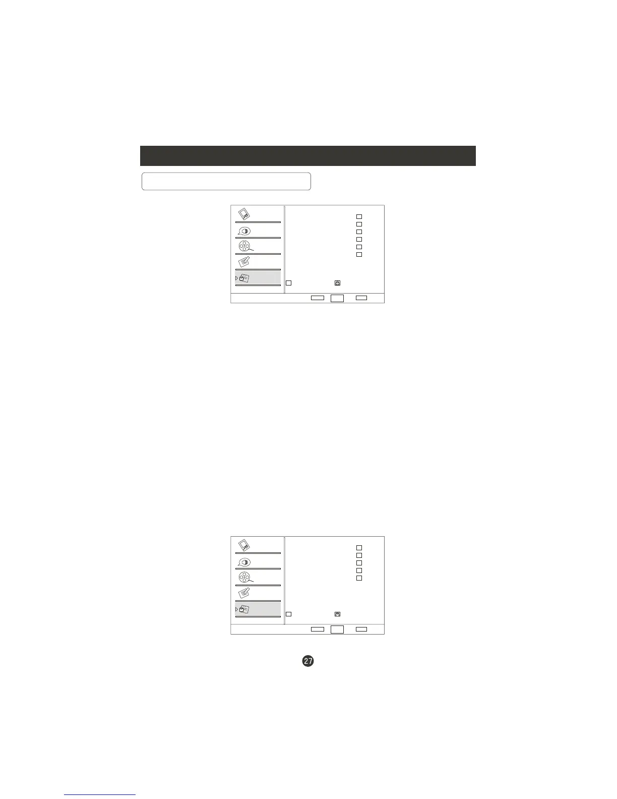 Press CH+/CH- to select the item you want to lock. Then press OK to confirm to