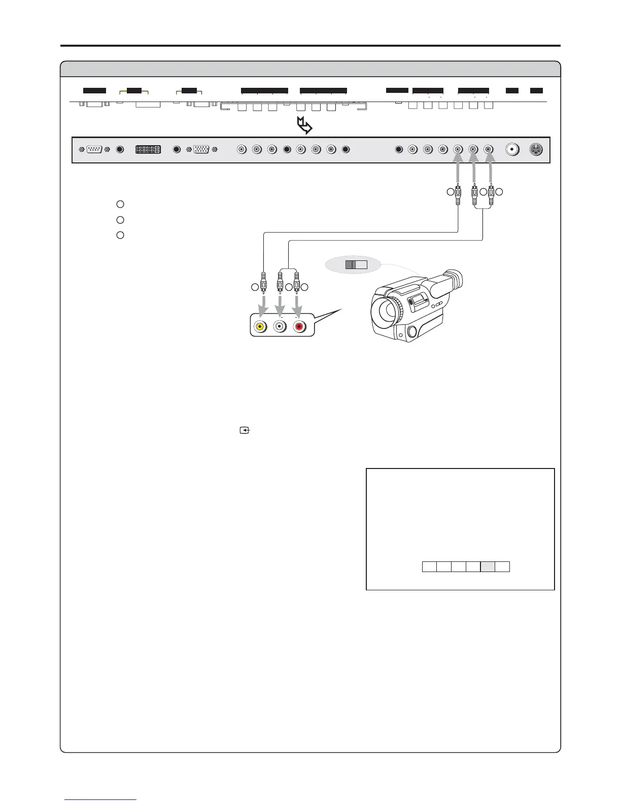 Connect the / cables between the Audio (L/R)/Video jacks on the unit and camcorder.Audio Video