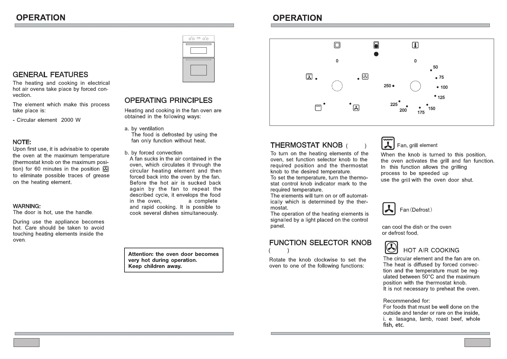 Prima PRDO302 - Bottom Main Multifunction Oven; Function Selector Knob; Hot Air Cooking; Fan, Grill Element