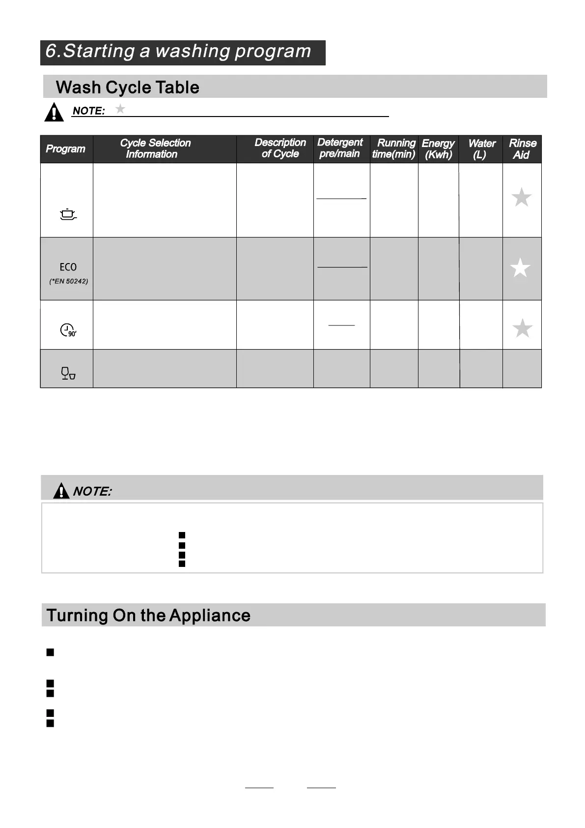 *EN 50242 : This programme is the test cycle. The information for comparability test
