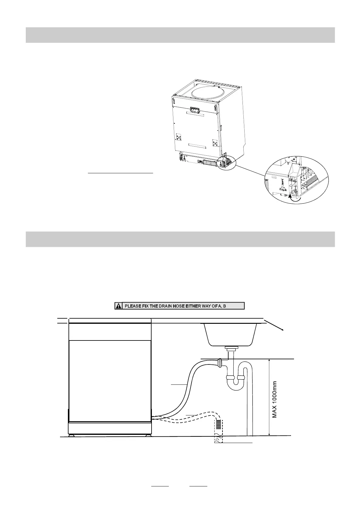 Insert the drain hose into a drain pipe with a minimum diameter of 40mm, or let it run into the sink, making sure to
