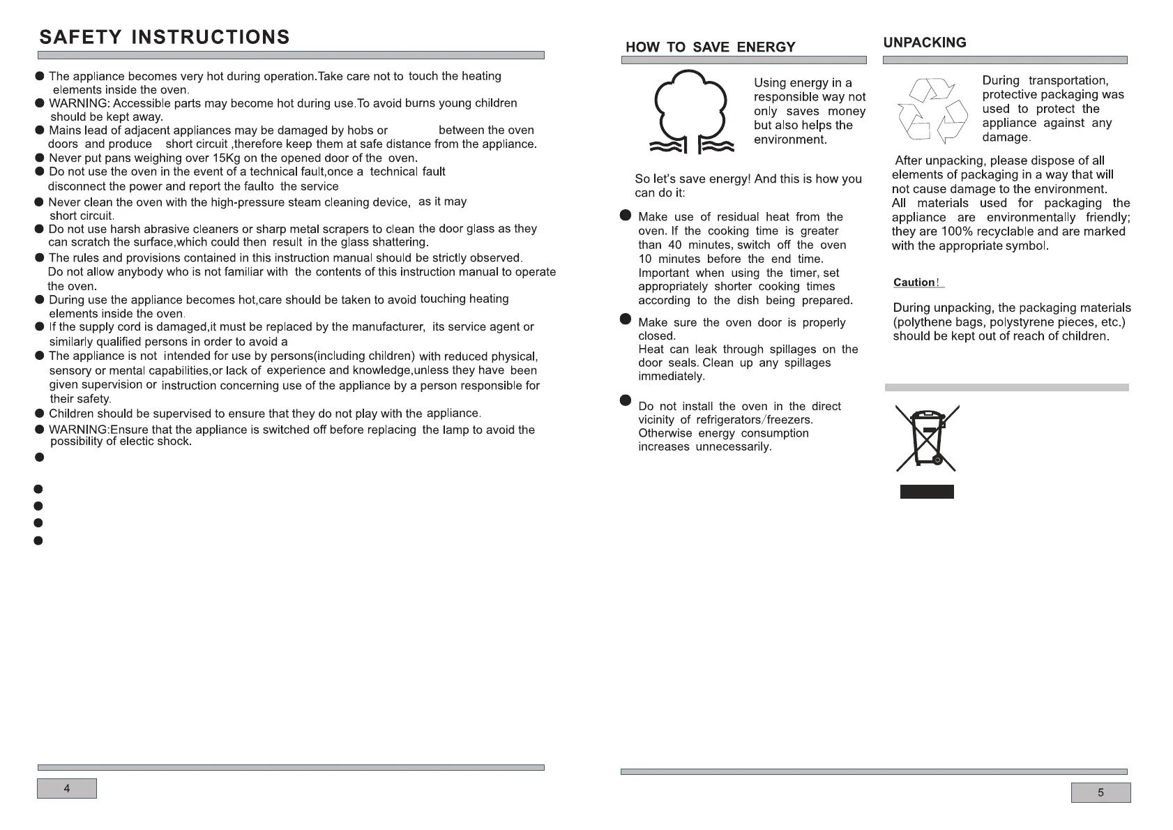 Materials used inside the appliance are
