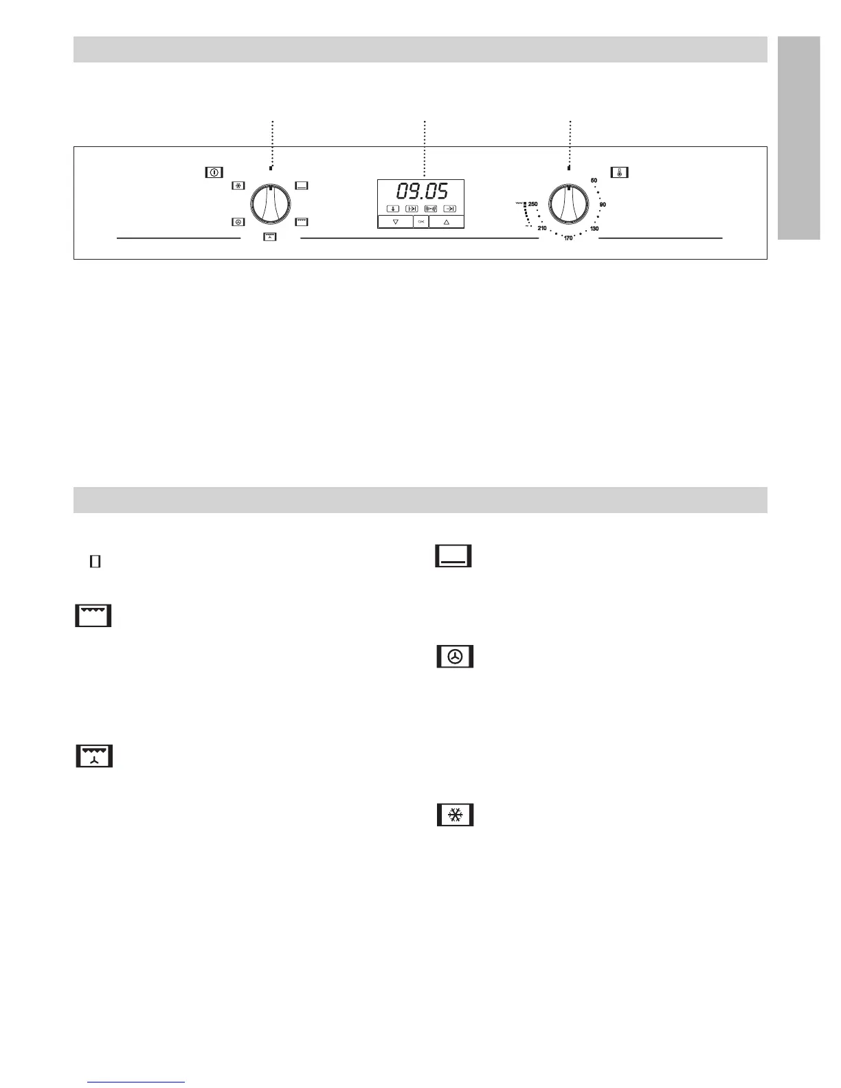 5 Control knobs for the hob.