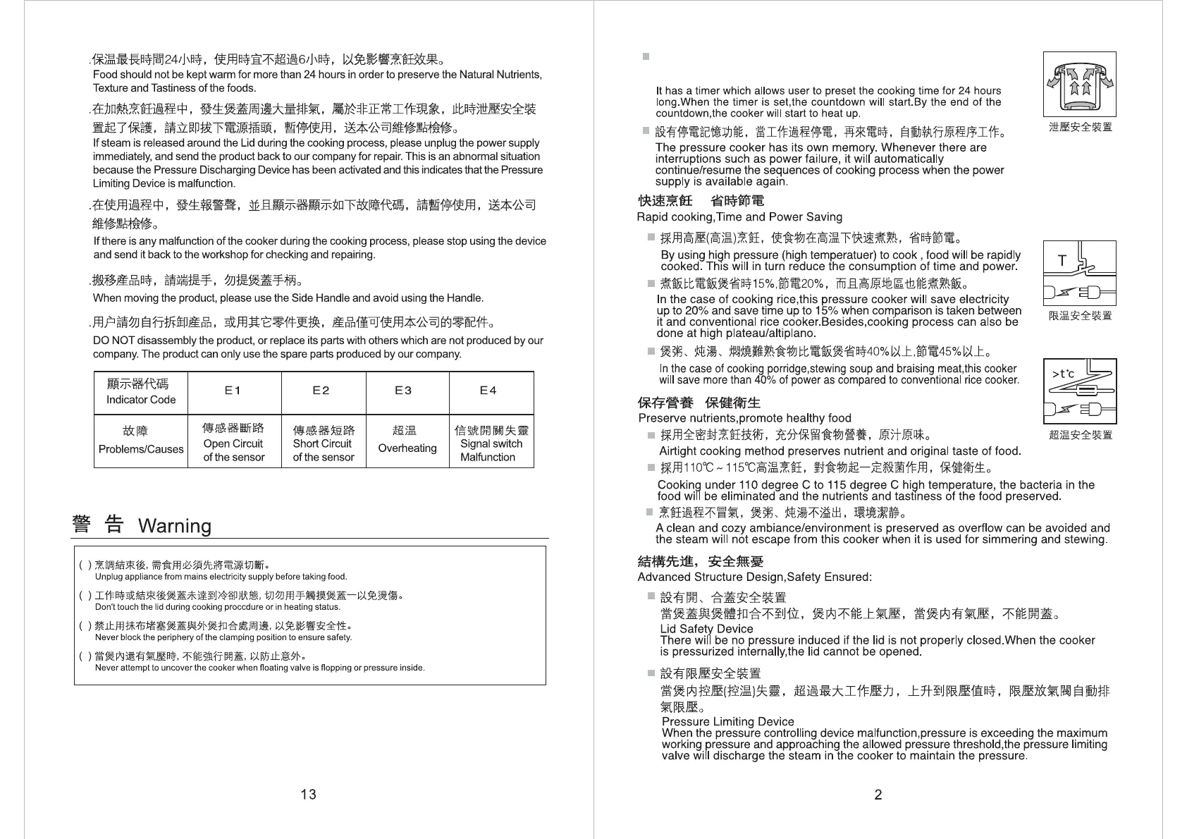 Primada PC-5610 - Food Should Not be Kept Warm for more than 24 Hours; Indicator Code; Advanced Structure Design, Safety Ensured; Lid Safety Device